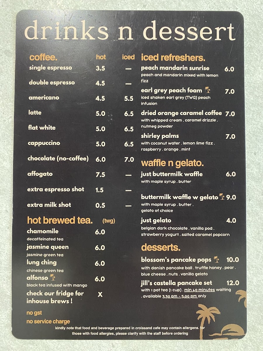 Croissand Cafe has earned praise from many of its visitors. Lionel highlights the fair pricing and exceptional taste, making this cafe a reasonable choice for a gourmet treat. Shuyu expressed her enthusiasm about the aesthetic and delicious food, pointing out the peach mandarin sunrise as a recommended drink. Likewise, Yun Yi Thiam shared his joy during family visits, where the accommodating staff ensured that families feel welcomed, shifting tables and chairs for larger groups. This attention to customer satisfaction adds a personal touch that truly makes Croissand Cafe stand out.